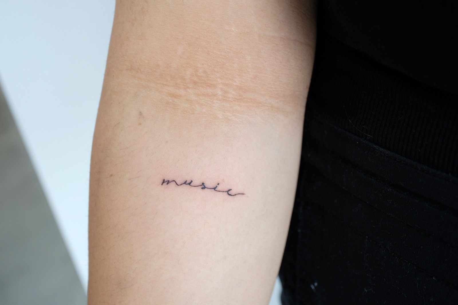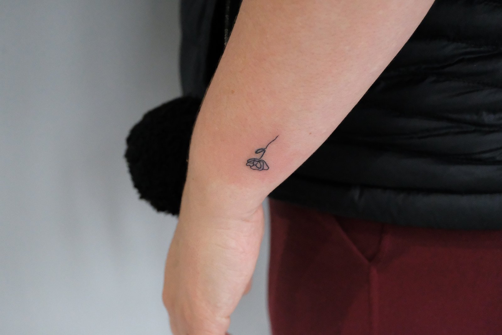 $50 mini tattoos are simple fine lines, approximately 1.5 inch and in black ink.