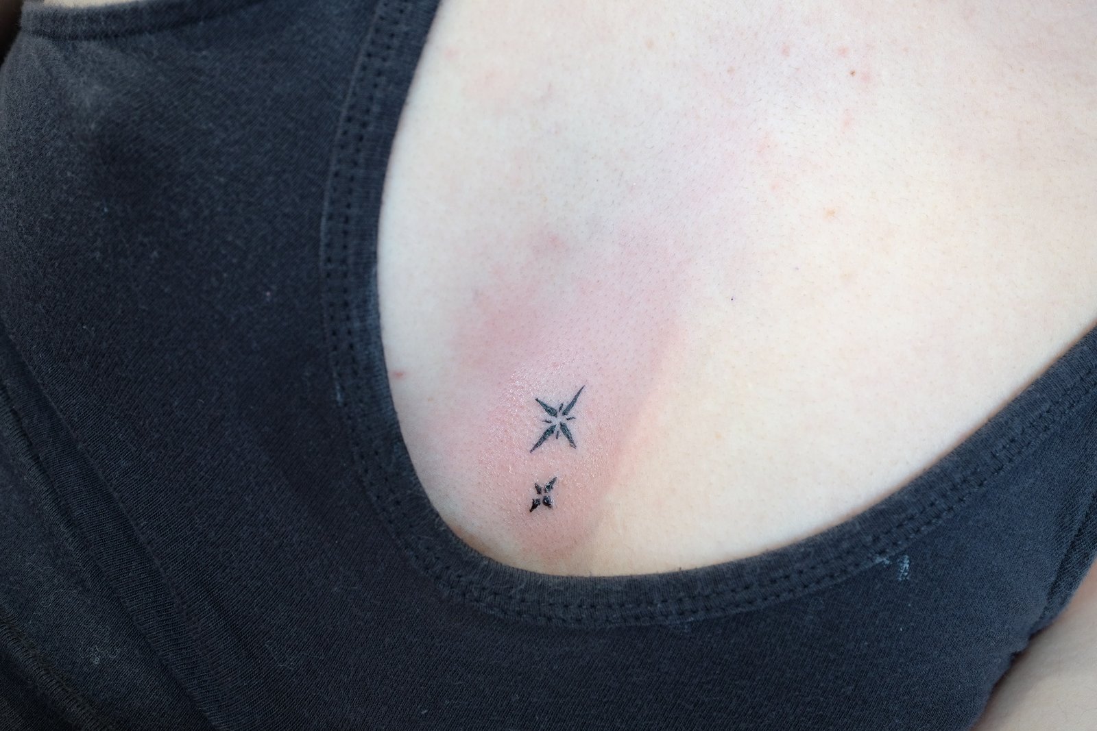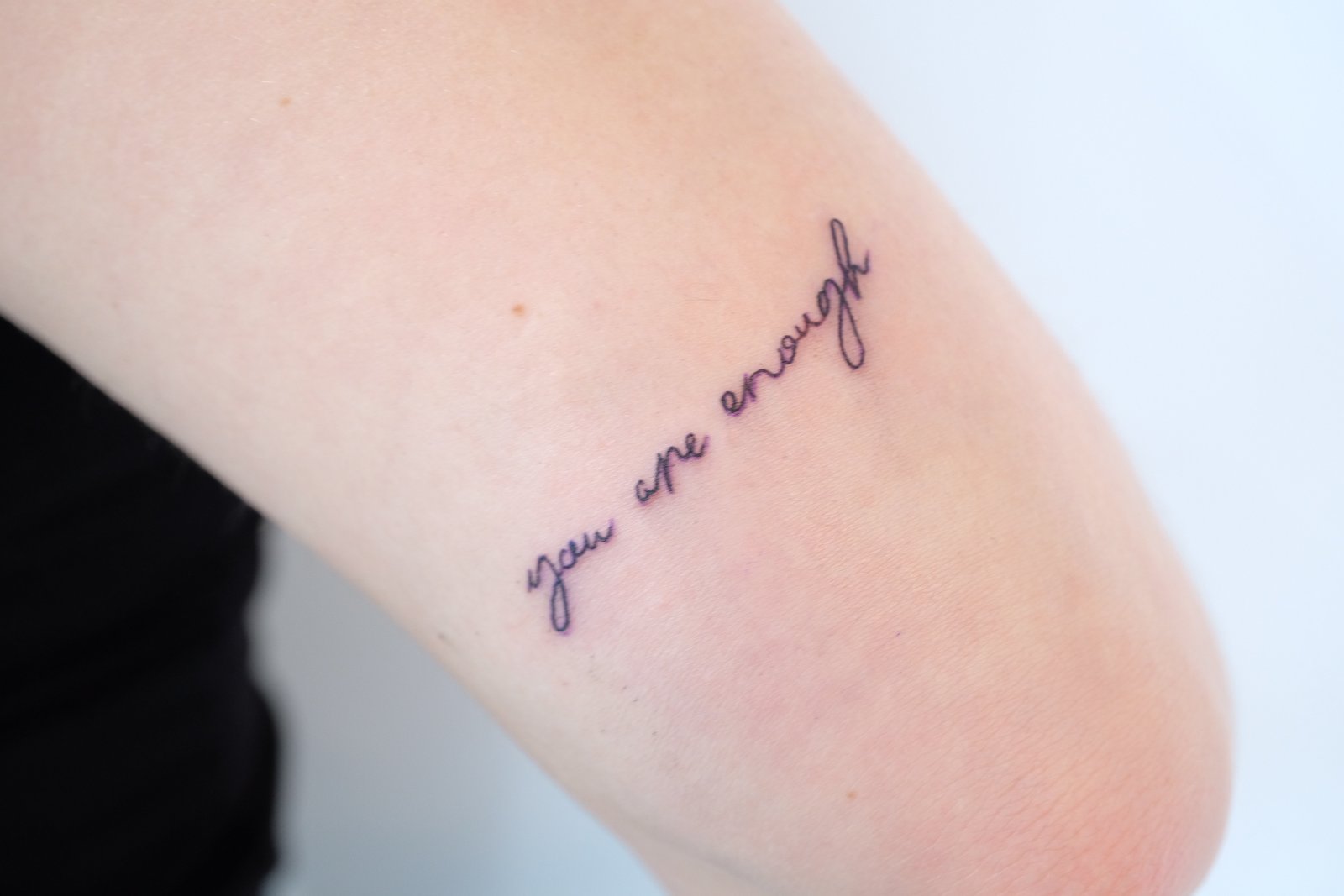 $50 mini tattoos are simple fine lines, approximately 1.5 inch and in black ink.